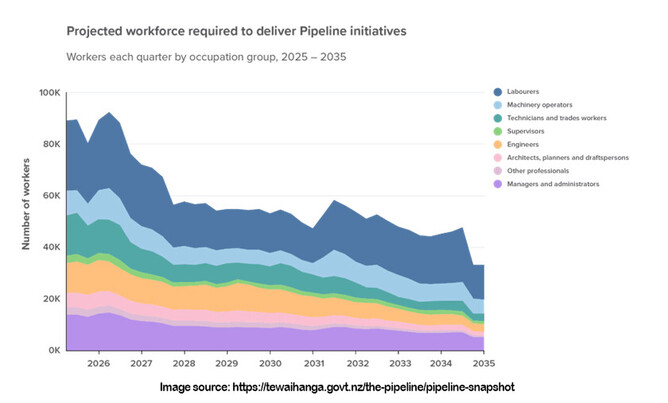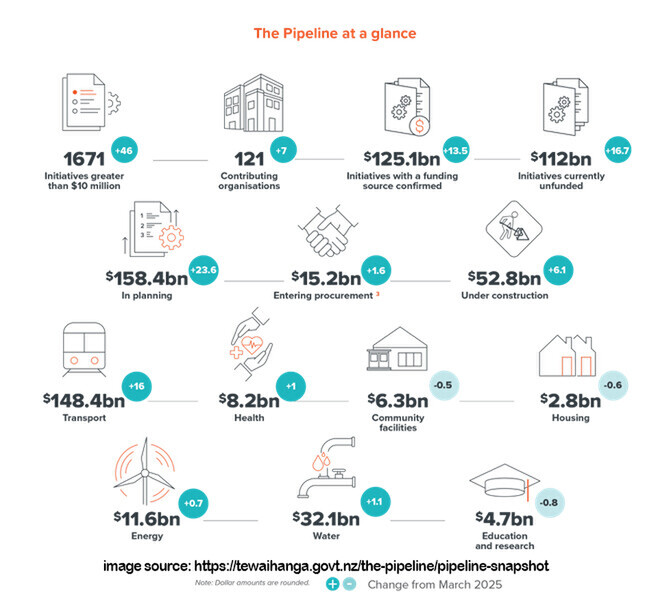 It’s important to note that the report includes numbers from all state highway maintenance activity from 2024 to 2034, which was added for the first time in the pipeline data, along with Christchurch Men’s Prison and Hawke’s Bay prison redevelopment initiatives.
