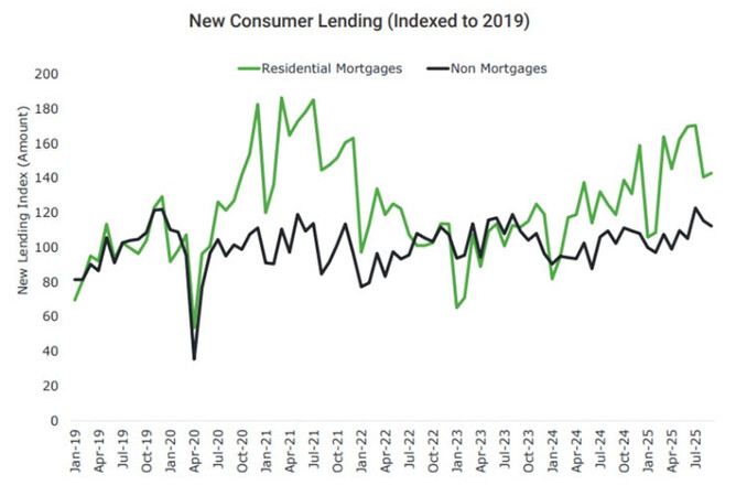 Additionally, new non-mortgage lending (i.e. credit cards, vehicle and personal loans, Buy Now Pay Later, and overdrafts) increased 10.3% year-on-year.