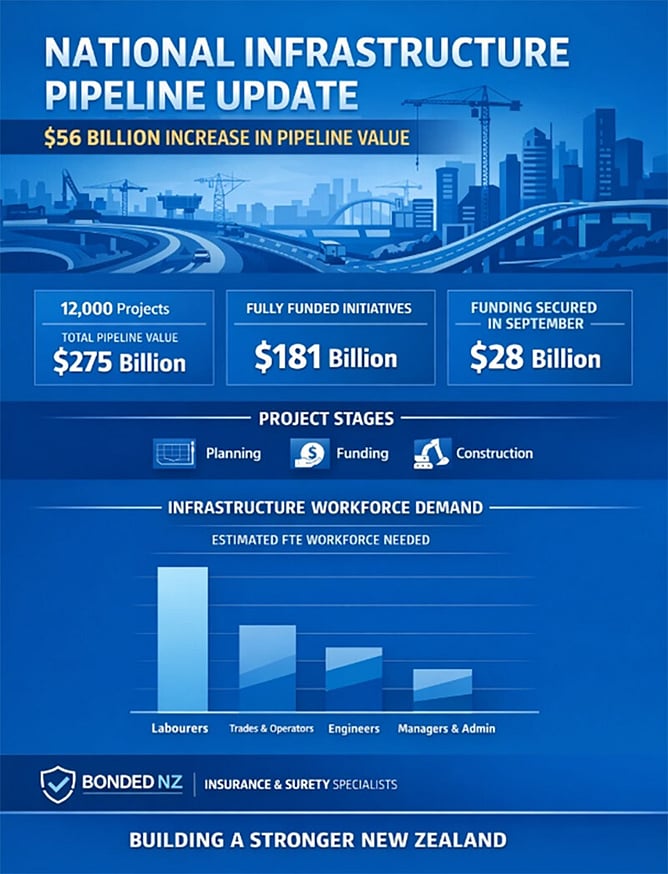 The Pipeline shows stability and future growth for infrastructure projects in New Zealand. Builders and construction companies should engage in proactive hiring strategies to ensure their workforce remains competitive, and secure themselves with the right insurance to mitigate potential project risks.