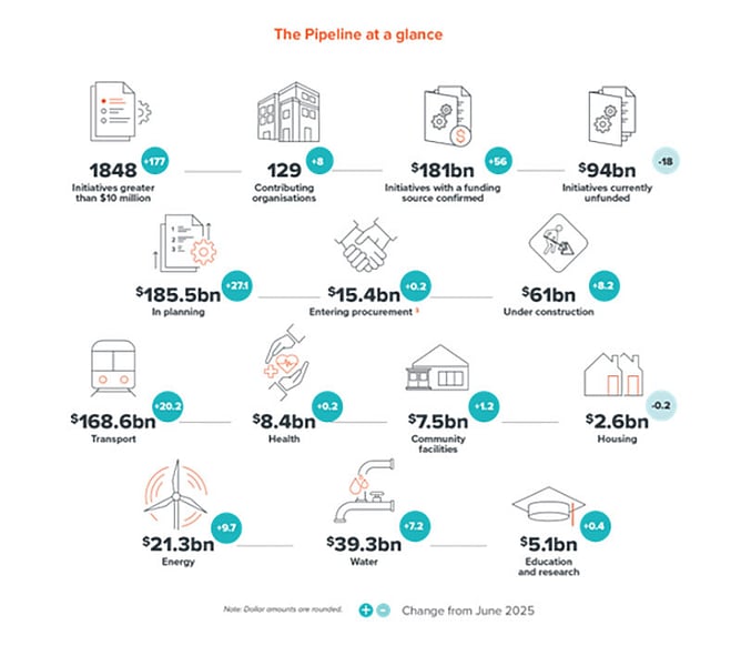 According to its September reports, the National Infrastructure Pipeline now includes nearly 12,000 infrastructure projects worth a total of $275 billion. It also estimates the total expected cost of initiatives with committed funding or a funding source as $181 billion.